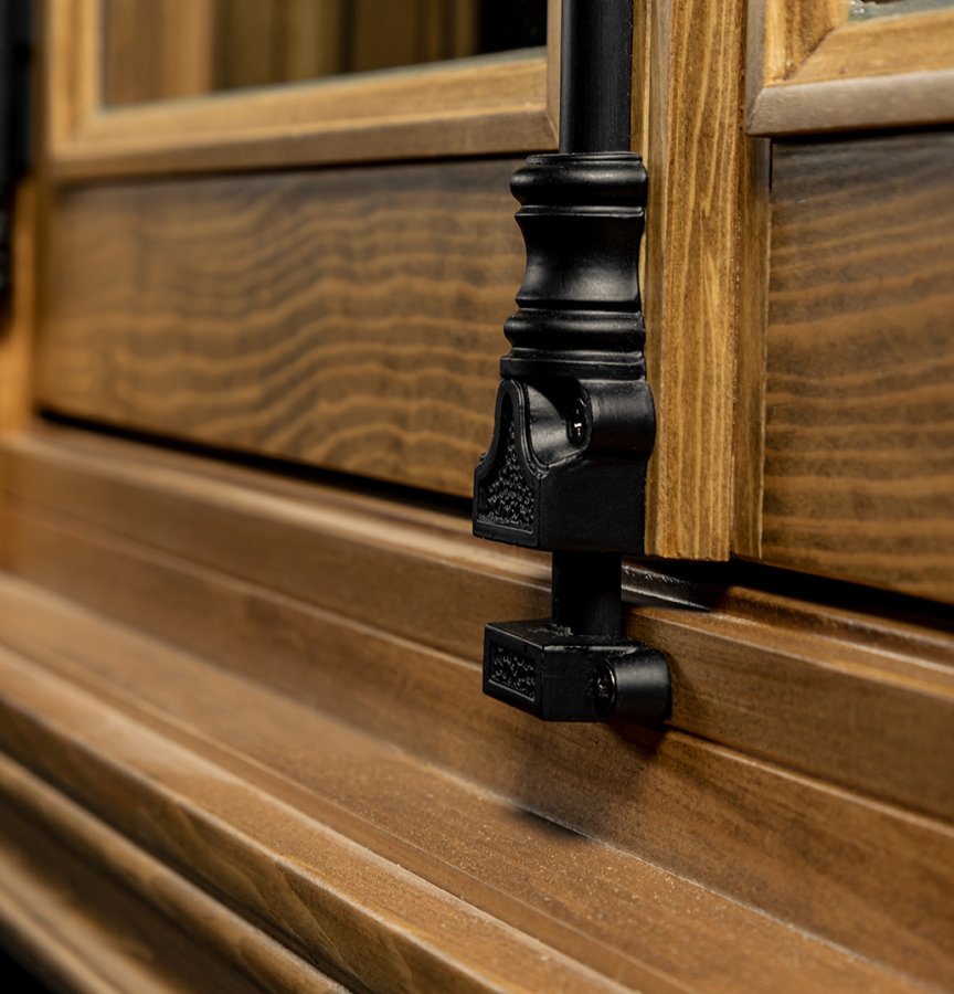 • Ajout d’arabesques en pin naturel aux quatre coins donnant un cachet d’authenticité ornementale. (Seulement pour moustiquaire avec cadre de bois.)
